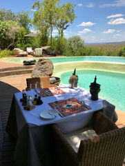 Jeden Tag wird das Menü nach den Vorlieben der Gäste kreiert. Serviert wird je nach Wunsch auf dem Holzdeck mit Blick über die Weite Afrikas, in der traditionellen Boma unter phantastischem Sternenhimmel, bei Kerzenlicht im Speisesaal oder auch ganz privat in der Suite.